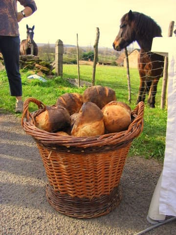Photo: A basket of fresh bucherons, round country loaves, tempts even the horses.
