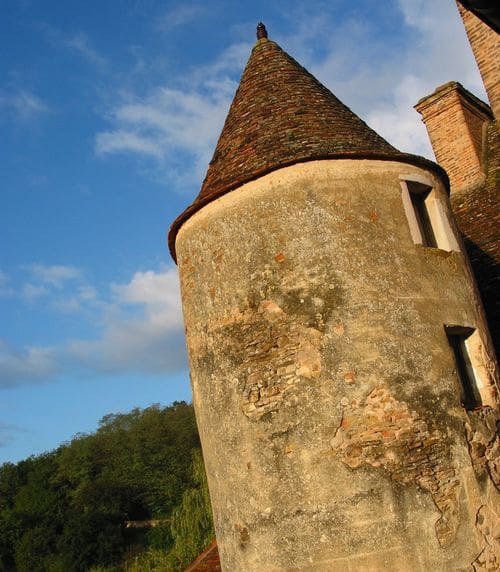 As you know, we live in an apartment on the 4th floor of the château. Being a medieval castle, there is of course no elevator, and only one staircase, a circular stone one in a tower. It is accessible to each floor and the four of use it, plus assorted guests–there are always a few at Balleure. I can tell you that if you lived here (and had a propensity to leave things at the wrong end of the tower, as I do) you would have beautiful strong legs and your arms would be in shape too, from carrying the groceries up and up.