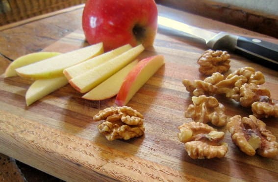 Beet, Apple, and Walnut Salad: Arrange lettuce on a platter. In center put a mound of cooked beets, cut small, surrounded by sliced apples tossed with lemon juice. Sprinkle toasted walnuts over all and drizzle with walnut oil and raspberry vinegar.