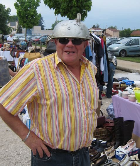 What a great Sunday story with the colander hat, used thongs (ewwww!), napping vendor, the Brocante-Mobile, and then tomatoes!