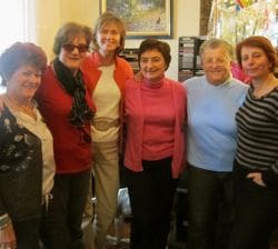 Meet our cast of characters: Nicole of course, and Catherine, a cute redhead; the elegant Eliane; Monique, with a twinkle in her eye; Gisèle, who hosted us at her lovely Lyon home; and one male interloper, Gisèle’s charming husband Bernard, who stuck around, I suspect, because of lunch. Before we ate, we chatted about the French diet over champagne in Giselle’s living room. Photo, left to right: Monique, Gisèle, me, Eliane, Nicole, Catherine.
