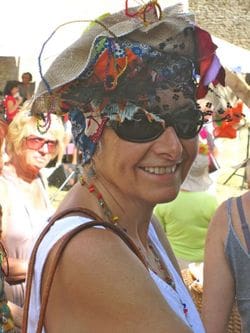 The festival had a unique air right away since it was held in the large courtyard of a château. Apart from all wares unique and odd and interesting, there was a booth with a sign that said, loosely translated, ‘Custom Hats While You Wait, Two euros’. Now this was intriguing. As it turned out, not only did you get un chapeau individually suited to your personality for a couple of bucks, but they were also 100% recycled.