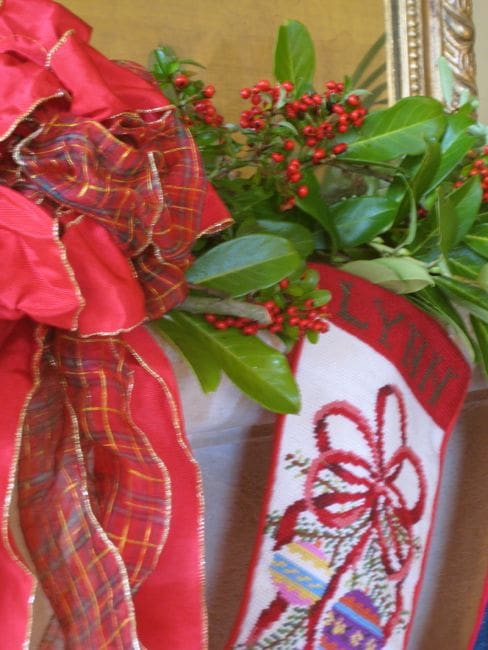 3. Chaussures vs. Chaussettes. No Christmas stockings for the French. Instead they use shoes. Kids put out a pair of shoes on Christmas eve, by the fire, and Santa fills them with little goodies. I asked Nicole if the type of shoes mattered—perhaps the shoes of the person with the biggest feet in the family? She says they have a better solution: “Kids will put out their fattest boots, of course!” (photo, below: stockings are a tradition chez nous, but the French have a different idea).