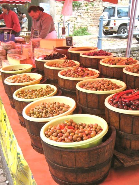 At our Saturday market, there is a pony-tailed gentleman who sells artisanal cheeses and of every sort of olive you can imagine, all in beautiful wooden barrels. We know fall has arrived in Burgundy when he adds to his stall steaming trays of the best sort of French Saturday lunch: Choucroute garnie. Photo below: Monsieur de la Ponytail.