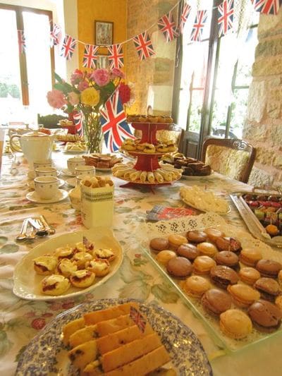 This being Europe, there was a High Tea Diamond Jubilee party to watch the festivities to fête the queen this week, thrown by Australian friends who live in a wonderful converted train station. We all gathered at la gare for a sumptuous spread of scones and such, sporting our pearls and fascinators, for a glimpse at the fashions and faux pas of everyone’s favorite royals.