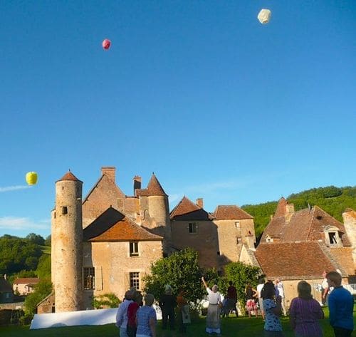 The party went off without a hitch. The weather was fine, great food, happiness all around. After lunch the revelers gathered on the hill behind the château for a little surprise: small hot air balloons were floated into the skies, to fête the birthday girl. Of course one landed just out of reach in a peach tree and nearly started a fire, but a little drama is always good.