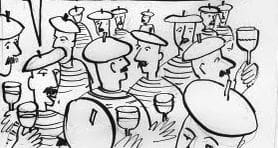 Before moving to France, we were enthusiastic Alliance members in Charleston. The group, with 70-ish members, was about three quarters francophiles and one French expats, and it was held at a member’s homeeach month. We celebrated the major French holidays, with a summer Bastille Day pique nique and a winter Fête des Rois, with a galette. There was a French film festival each year, and one of the French members did a cooking class from time to time. When we had it at our home one month, we fêted a visiting French ballet group that was performing at the Spoleto festival. The AF was a fabulous way to stay connected to France. Cartoon by Tom Vieth of A Small Village in France.