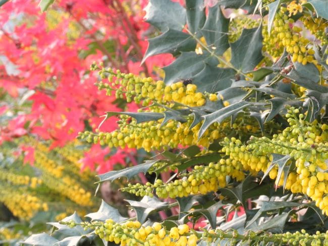 Mahonia Japonica is a favorite plant of mine. It's evergreen, elegant, easy, and great for fall color.