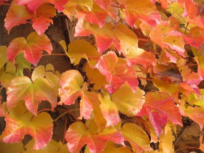 PHOTO: Vigne Vierge (Parthenocissus quinquefolia) is a popular vine for walls in Burgundy. This is the plant that got me in trouble with the agricultural beagle at the airport one time. But that's another story.