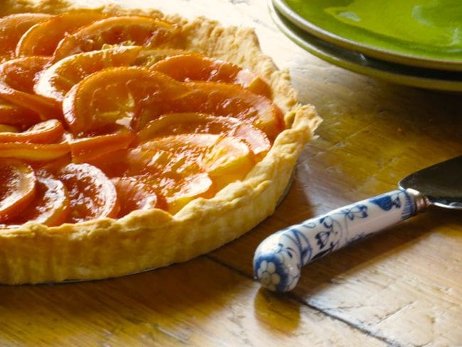 The tart must have been a success, as it disappeared quickly. Even if you don’t make the tart, do try the candied orange slices. They’re as easy as, well, pie!