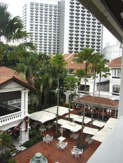 Nothing embodies the romantic, louche lifestyle of the British Colonial era like the Raffles. Picture arched loggias, ceiling fans languidly spinning, amidst a garden of palms and tropical blooms. Imagine bringing out your best jewels for dinner and deep conversation in the garden with the litterati and the glitterati, followed by waltzing to the live band long into the night. In the hot afternoons one sips Singapore Slings–a Raffles invention—in the dark, cool, Long Bar, a favorite hang-out of Joseph Conrad and Ernst Hemingway.