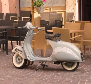 You may have perceived that gray and black are my least favorite colors, and I avoid both. But we’ve owned 2 Renault sedans in France, both gray. The reason: we like to buy year-old cars instead of new ones, and we’ve never been able to find one any other color. Photos: even les scooters are gray. Below, a black dog is the perfect Paris accessory.