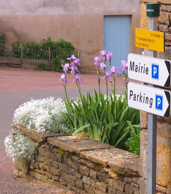 June is when flowers are at their best in Burgundy, especially the roses. The irises are strutting their stuff, la clématite is sashying up walls, and life is beautiful. I took une petite promenade in the village this week, accompanied by my camera and my cat, the little bell on his collar jingling beside me all the way. This is what I saw.