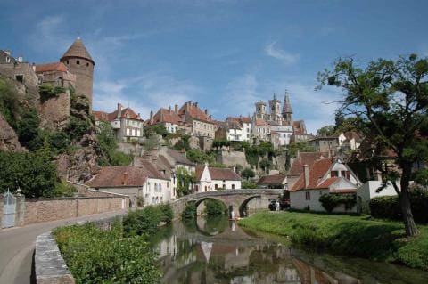 In northern Burgundy there is a ville that to me is among the most gorgeous in France: Semur-en-Auxois. Viewed from afar, it’s my fantasy of a French town. Circle down past the very cute town center to the river that surrounds it, its steep bank lined with fine old houses, and you’ll see a spot that has graced many a magazine cover. Photo, Cote d'Or Tourisme.