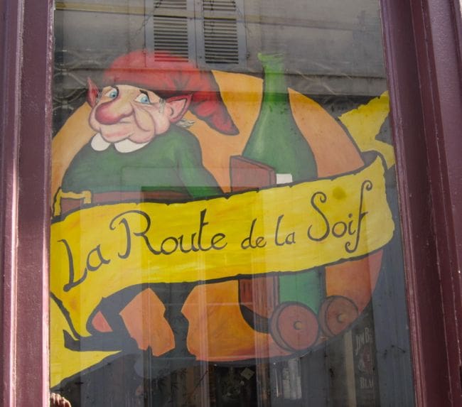 Photo: Be careful, if your nose is red like this, you may be serenaded. The sign says "The route of thirst".