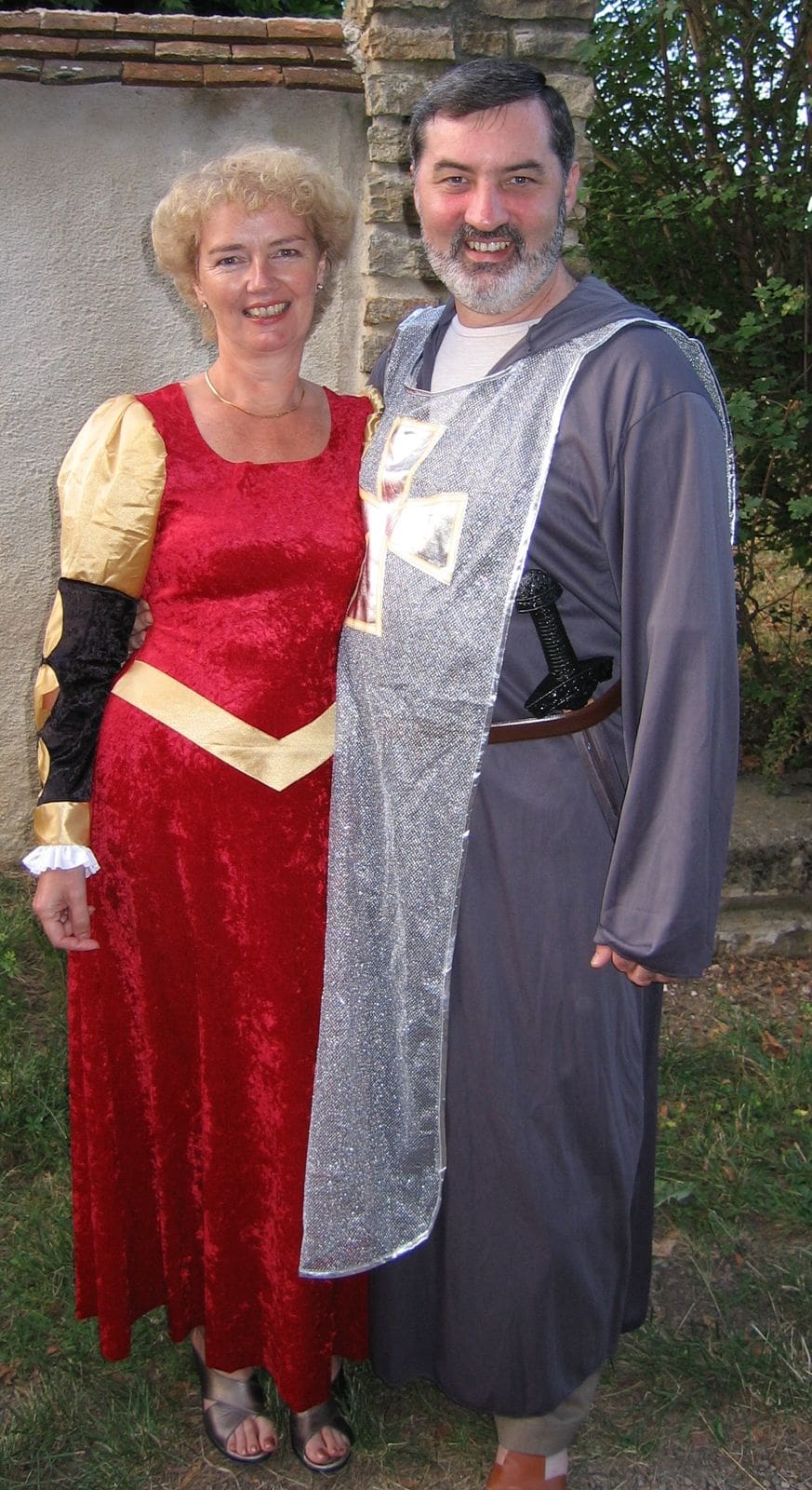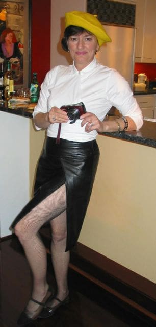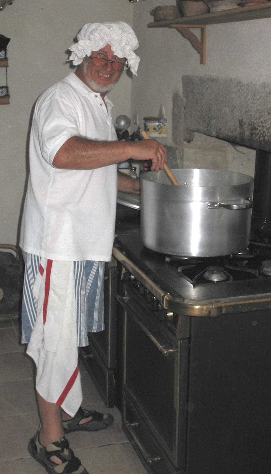 This is what our US friends did 12 years ago, when they threw us a going away party for our move to France. They planned a wonderful meal, and asked the guests to 'dress French'. Ron was quite dashing in his beret and fake mustache, baguette tucked under his arm. My friend Sandi did the French maid thing, and she did it well, as you see below.