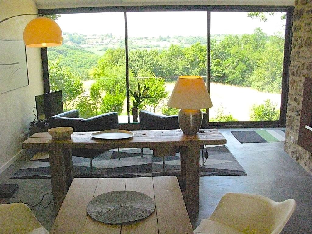 Photo above: 'La Pomme' is the more traditional of the two gîtes. Below, the sleek living room of 'Le Lapin', the more contemporary gîte.