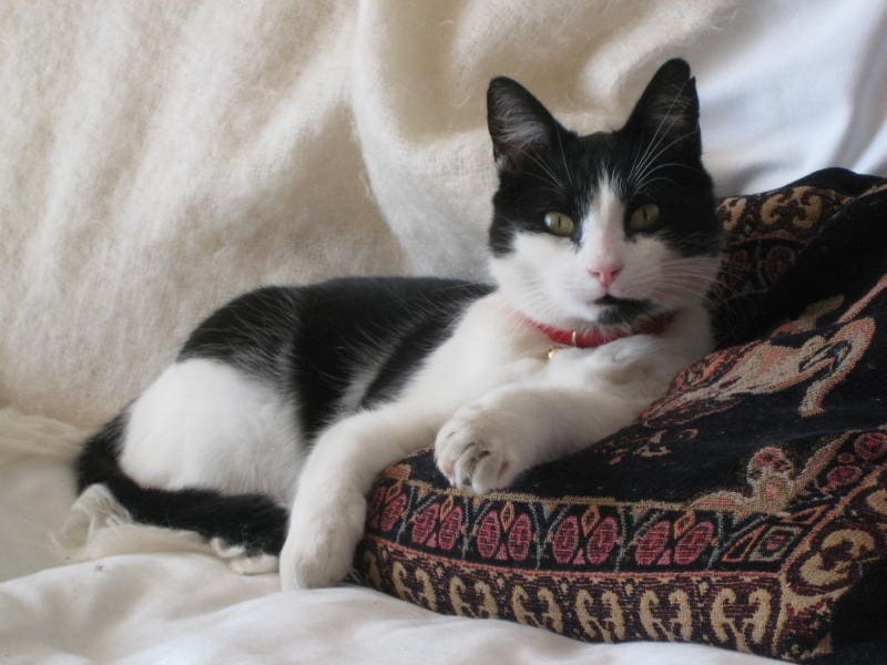 Last year we decided to let our cat, Domino, write the Christmas letter. A little background for those of you who have not had the pleasure of meeting him: he is a rescue cat with feral roots who nevertheless considers himself to be of royal origins. He alternates between extravagant affection and worrisome aggression when crossed. His marked territory includes the entire village. He breakfasts/dines/naps with so many village families that we are not entirely sure we are his main proprietors. He has no fear of dogs, large or small; loud noises do not faze him. He walks at a single, slow speed, with a swagger that has caused one neighbor to dub him “John Wayne”. In the South we would call him sassy, here we would say coquin. (Photo above: the auteur, getting ready to celebrate Christmas). Here is what Domino had to say in his Christmas letter: