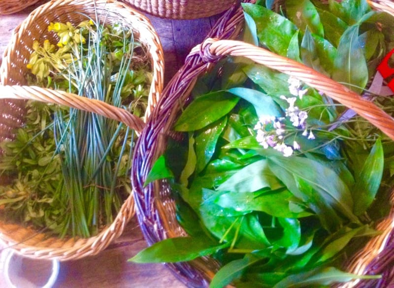 Now spring is upon us, and with its arrival comes a whole new bounty of wild things to put on your plate. The spring onions have reached maturity and now can be cajoled out of the ground to reveal lovely little pearl-like onion bulbs that taste great thrown on a grill or chopped up and sprinkled over fresh eggs. The nettles are at their pre-flowering prime and will soon take over ever yard and field in sight. If you are careful to pinch off the topmost tuft of leaves- touching the stem and not the tops of the leaves- you can manage to avoid the “stinging” and just get the nettle. Another new arrival is ail des ours, or wild garlic, whose bright, tender leaves can be made into a delicious pesto.