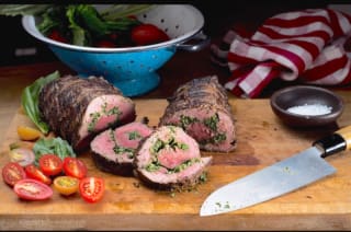 For the main dish (le plat): I’ve been making a lot of composed salads, with steak or chicken sliced on a bed of lettuce with interesting vegetables, and with that I pass French Dressing #1 and maybe a béarnaise mayonnaise. But if you want to really wow, try this roulade of beef stuffed with herbed pesto, by David Tanis. The trick to getting this right is to cut the meat properly. My butcher didn’t understand until I showed him the detailed photos included in the article—then he understood right away and it was perfect (Photo, Karstan Moran, NYT).