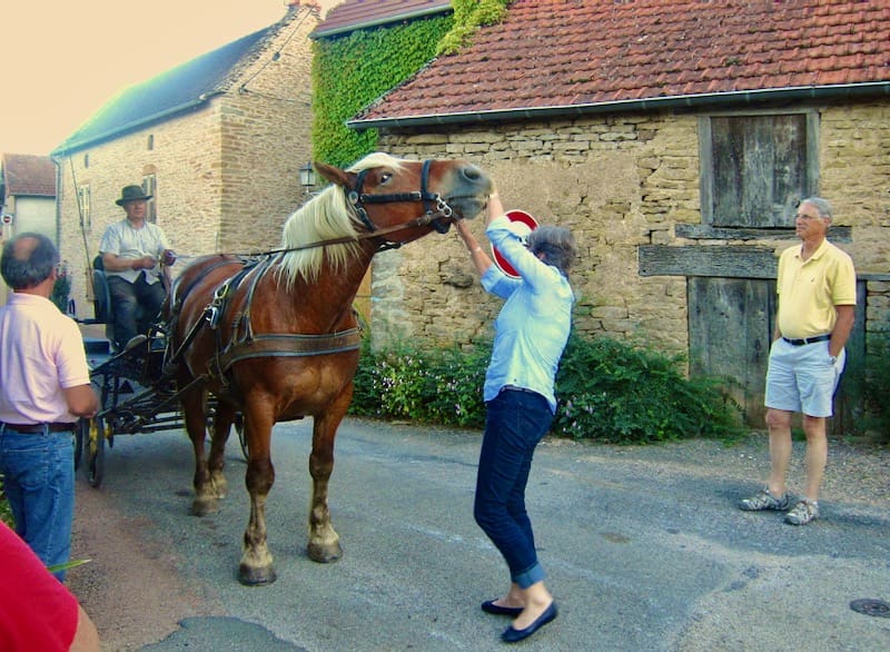 With our next door neighbors at La Vineuse, greeting a horse and carriage that passed in front of our houses.
