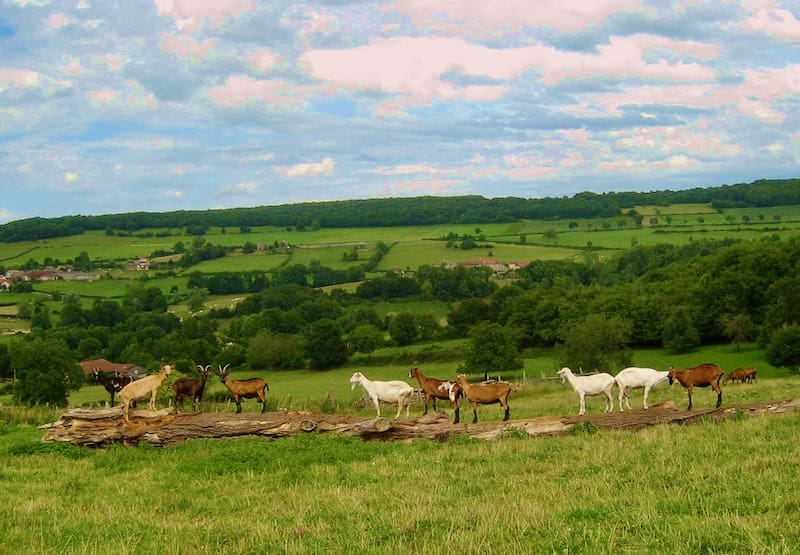 At the bottom of the steep hill our house sits on, the goats are almost always perched on this log; my mother dubbed them “The Intelligent Goats of La Vineuse”, and kept a framed picture of them in her study.
