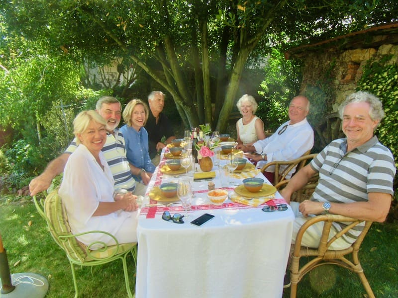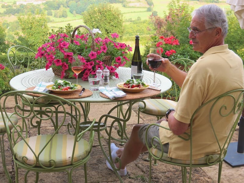 This last photo is of Ron, on our former terrace, at his favorite pastime: lunch, and raising a glass. So on this dawn of a new decade, we raise our glasses to you, dear readers: Bonne année and bonne santé!