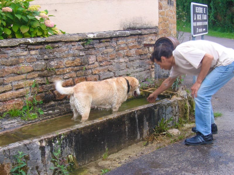 Almost every French village has a lavoir, where clothes were once washed, Here, a trough off the lavoir at Balleure is put to good use.