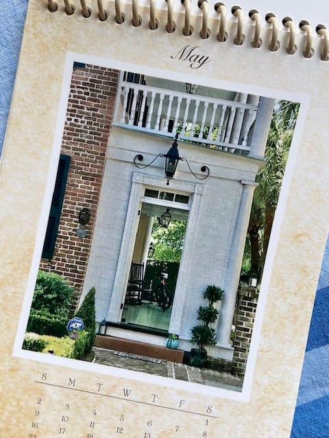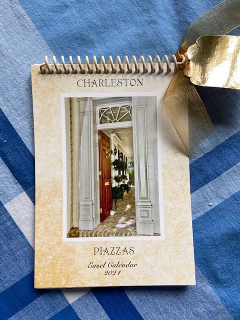 And finally, to wrap up our feature on gifts: If you are looking for a small gift for a friend who loves the South, let me tell you about a present my friend Sandi gave me. She has created an easel calendar of Charleston piazzas she photographed. I think it captures the very essesnce of historic Charleston. It's available on Etsy for $13. Next I think we must get Sandi to France to shoot the French doorways!