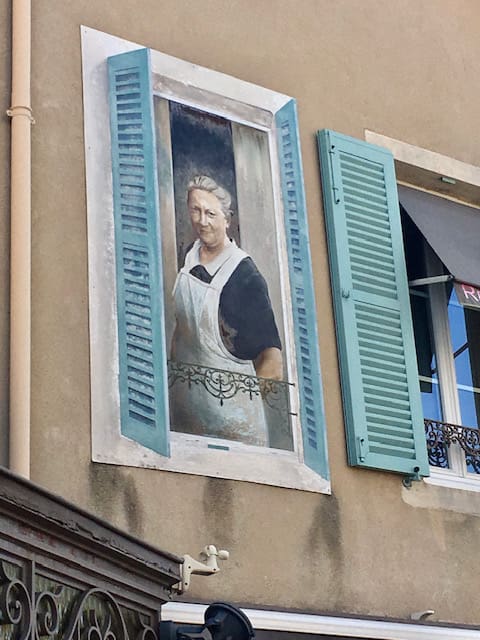 In the small towns of Burgundy and around France, one often sees smaller, more intimate versions of the huge urban mural. Often they are painted where a window was closed up, or to spruce up a public space.