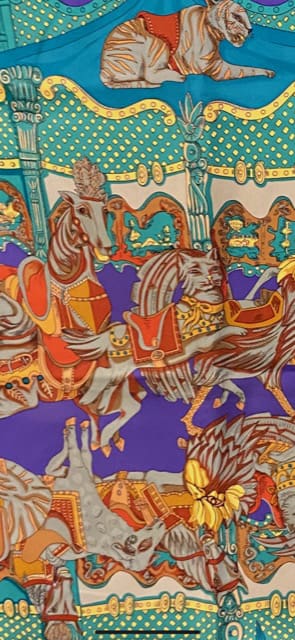 From my favorite Beaune vintage store, here is a carousel cat on an elegant silk Hermes scarf: