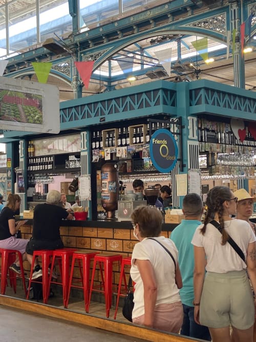 In France, “les halles” refers to a permanent indoor food market, usually enormous and typically, the joint is jumpin'. The traditional ones look like giant greenhouses with glass roofs. We've visited beautiful halles in Paris (the original one, I believe), Lyon, Colmar, and other cities.