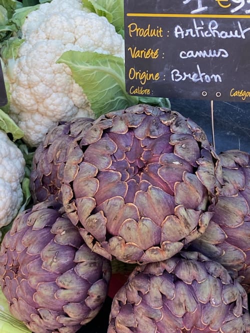 I would like to know how to cook those giant artichokes. I once bought one and cooked it for hours. It was still tough. Maybe the french just carve out the heart. Also, the canicule and lack of water in France may be effectiing the lives of flowers,trees, etc.