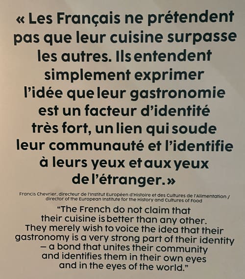 I think this display captured the essence of France's relationship to food, though I'm not sure I quite believe they don't think their food is the best.