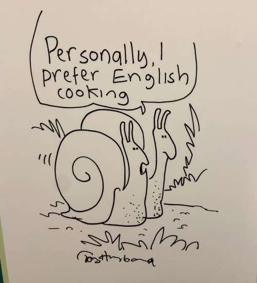 They had plenty of cartoons about food from famous cartoonists on display. Here are a few of my favorites: