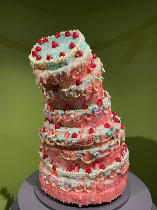 The (plastic) cake below was an art installation. The artist says, "I thought to challenge our ideas of desire, success and beauty…playing with the taboos around food, exploring the darkness of the veneer". Hmm…