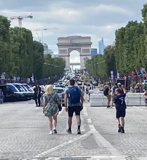 "Parts of the city and most access to the Seine were fenced off to ensure security for the opening ceremony, but there was much to see anyway. If we couldn’t get into Notre-Dame, we could hear the evening organ recital at the second largest church in Paris, St. Eustache; we could walk the Champs-Elysées without any traffic, tour the three museums in les Invalides almost without other visitors, and admire the left bank undisturbed.