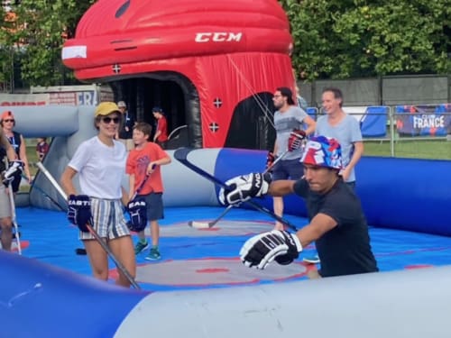 "At Club France, you could try out various olympic sports yourself: field hockey, cross country, cycling, and what it would be like to be a Paralympian. Thousands watched France win a fencing match, and Tuga, the mime, was there as well, only to show up the next night at beach volleyball under the Eiffel Tower.