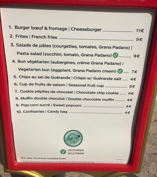 "Food at Club France was excellent, as to be expected, but at many of the individual event venues, there was not much to get excited about. We took a picture of the menus as proof.