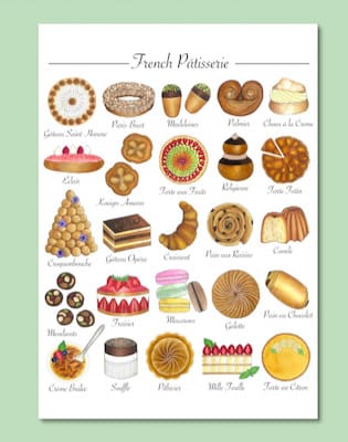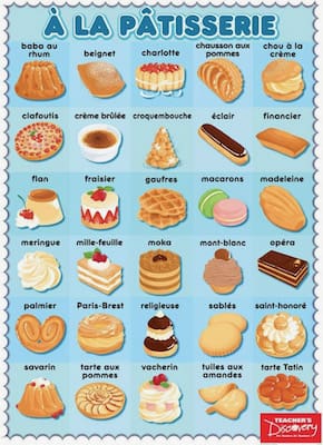 So, do you know your French pastries? I’m not talking about those stars of the petit déjeuner, croissants and pains au chocolat; but about the serious sugar bombs that they serve for dessert. I’ve included a couple of posters here, plus some photos, so you can perfect this essential part of your French education.