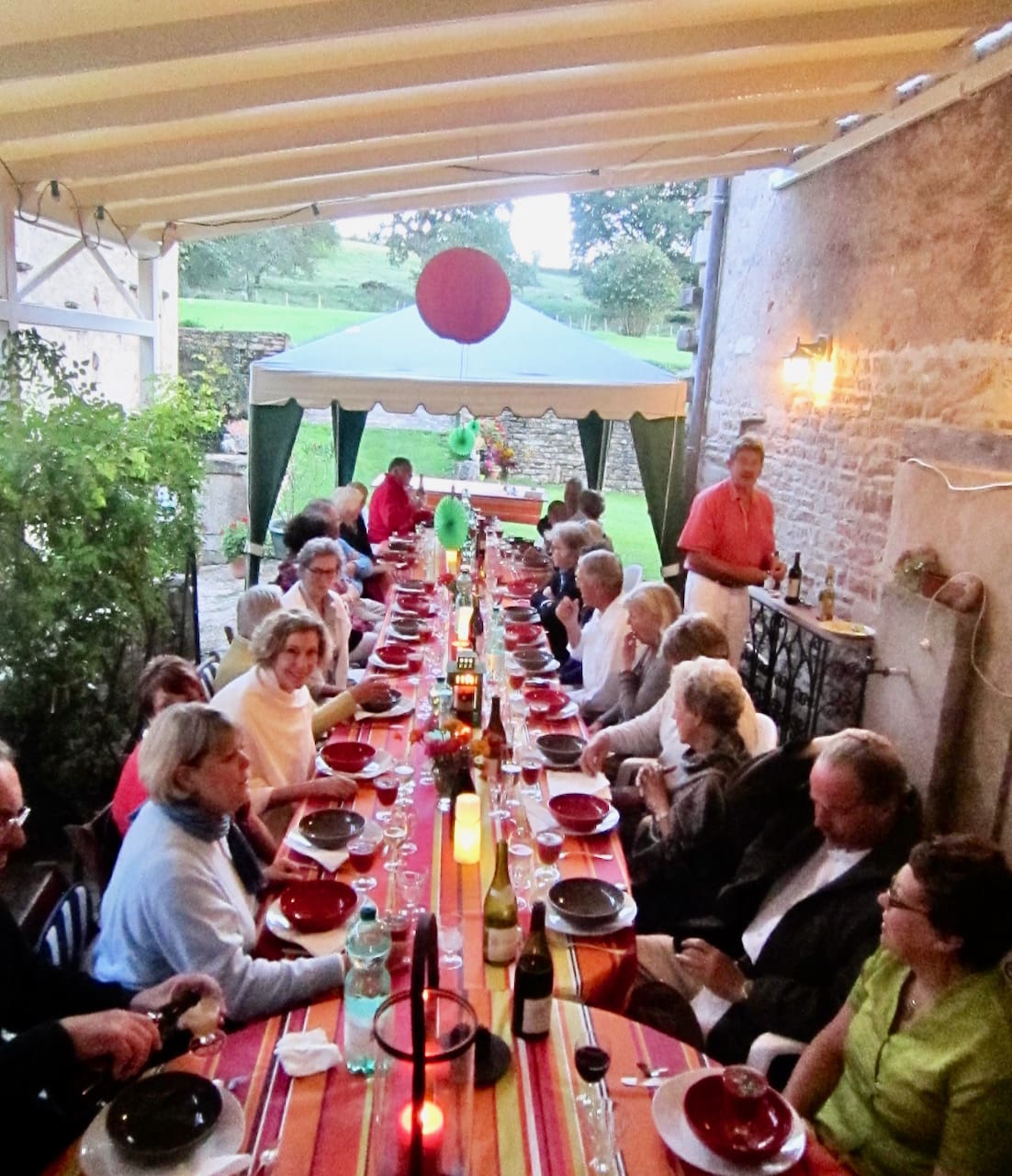 Partytime at the château. Beautiful Bourgogne is close to several borders, and it’s loaded with expats. There are at least 8 nationalities at this table.