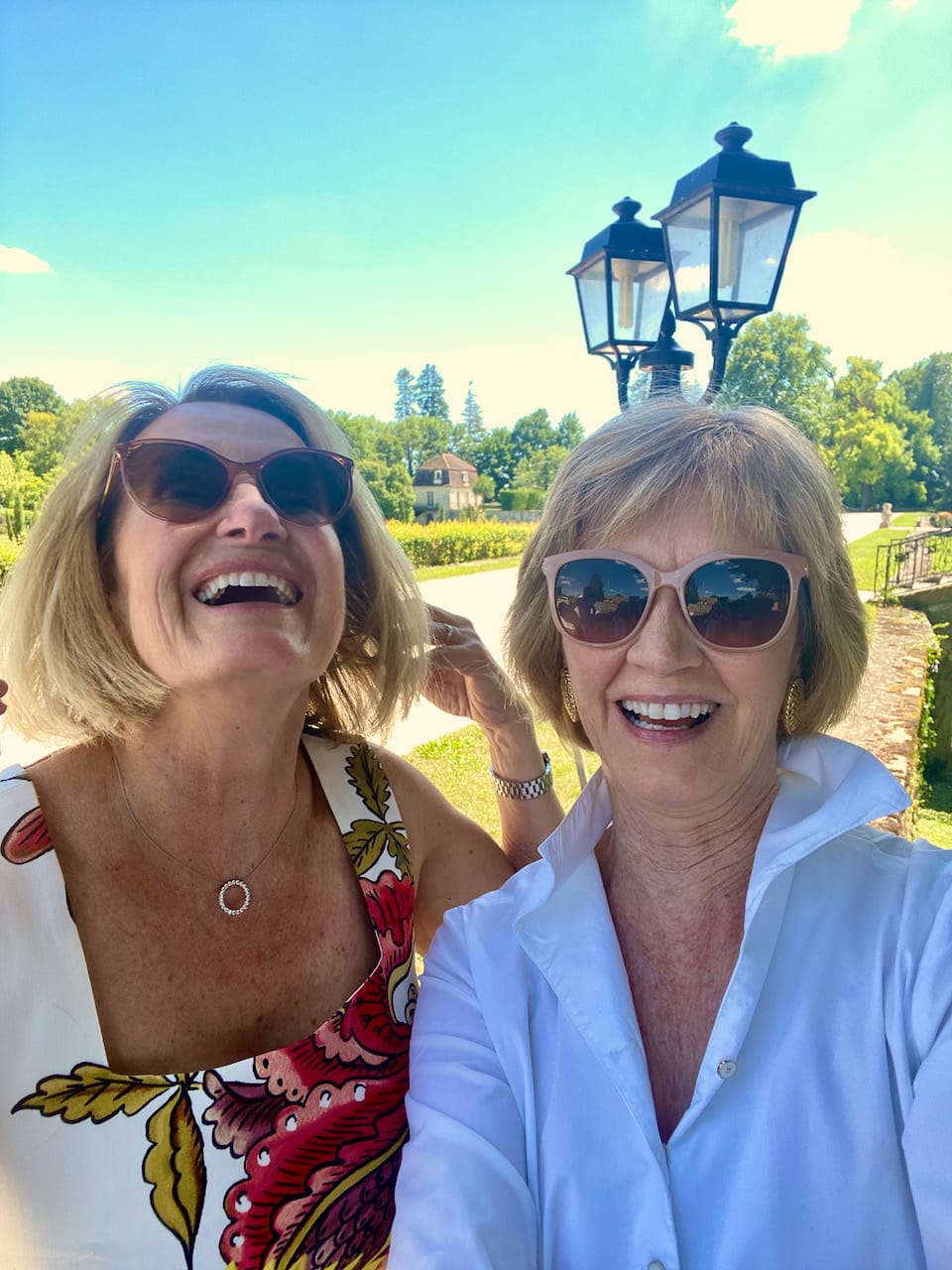 Uh-oh–Here am I, playing tourist at a Burgundy château and acting like a selfie-taking American, flashing the pearly whites, with my Canadian expat friend Debbie,