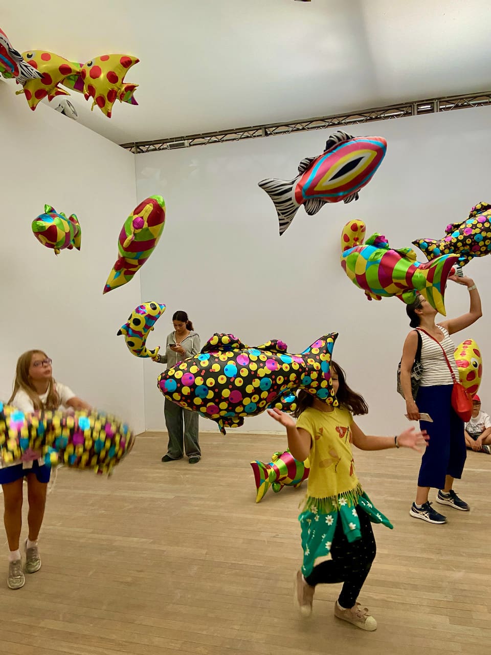 —Fun expos abound. The playful Fondation Louis Vuitton building, a museum, held a one-man David Hockney show, complete with some wild light shows and a “moon room”. At the magnificent Grand Palais, newly buffed and fluffed (to the tune of $500 million, a four year project), there was a high-touch show called Euphoria: Art is in the Air, that captures the new mood of the city. Multiple artists showed off “inflatable art”, mostly done with balloons of all sorts. A visit was a play day for kids of all ages.