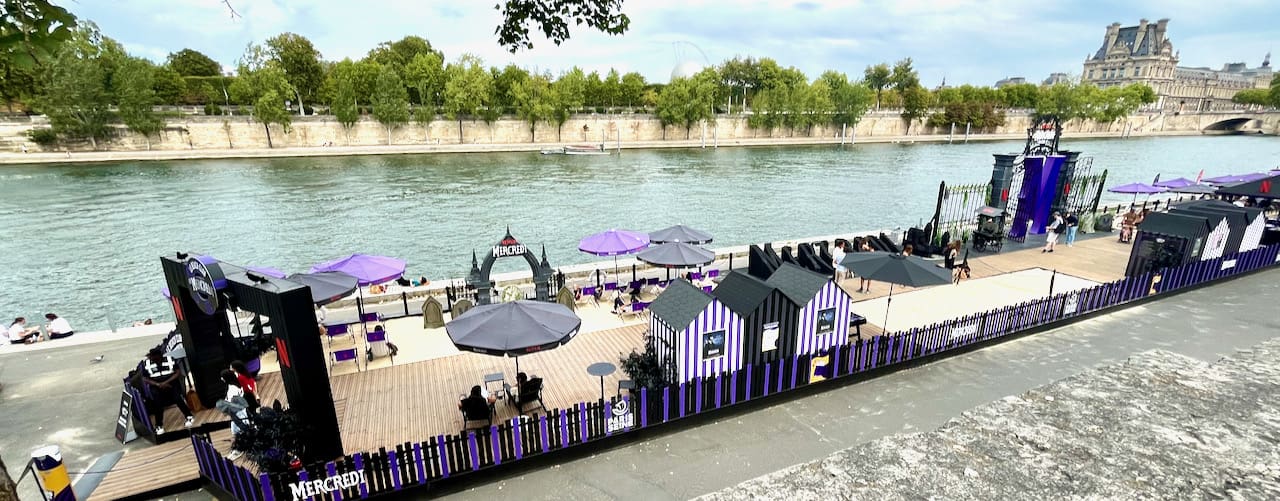 Along the Seine, a playground for all ages based on the TV show “Wednesday”.