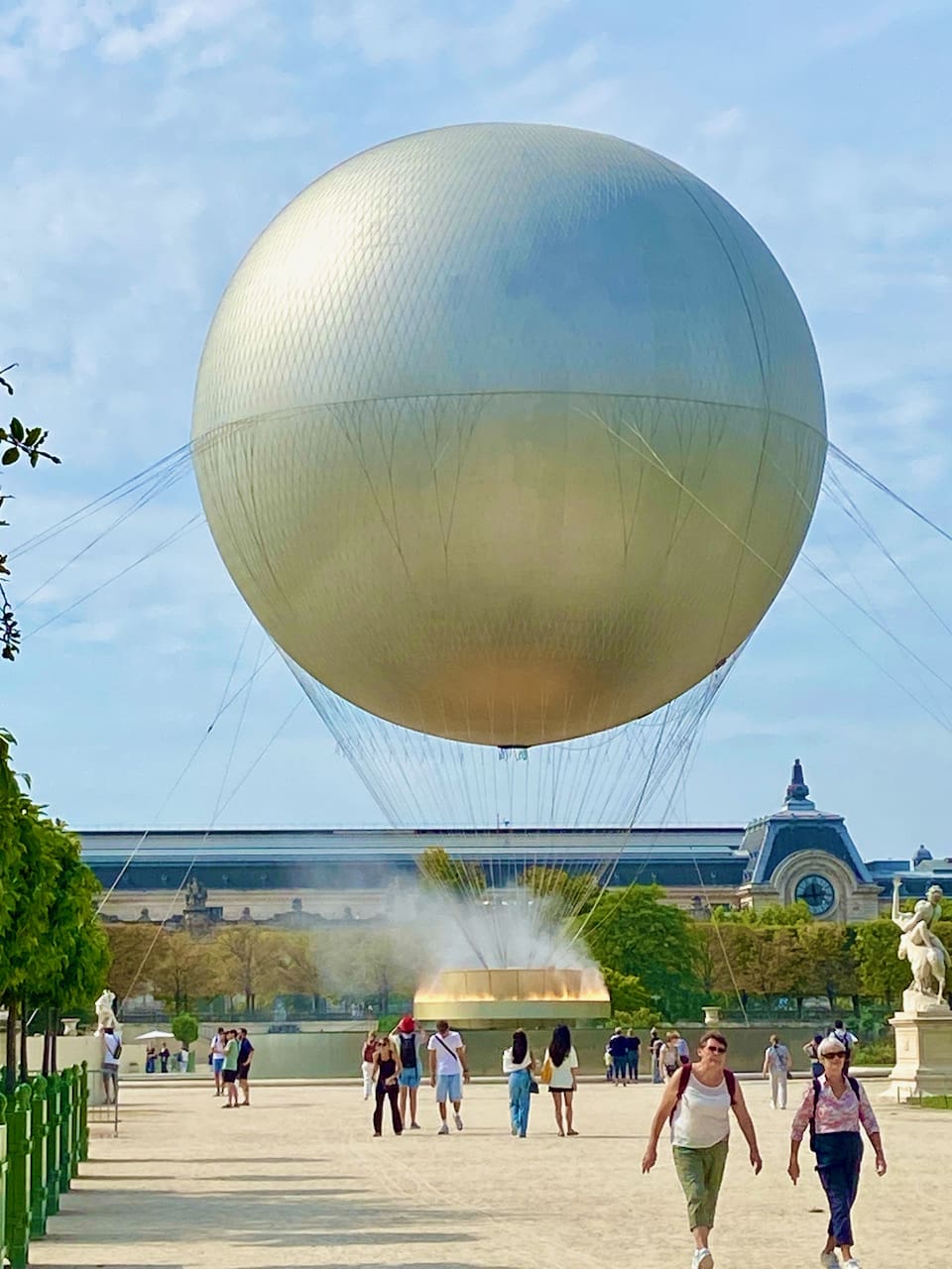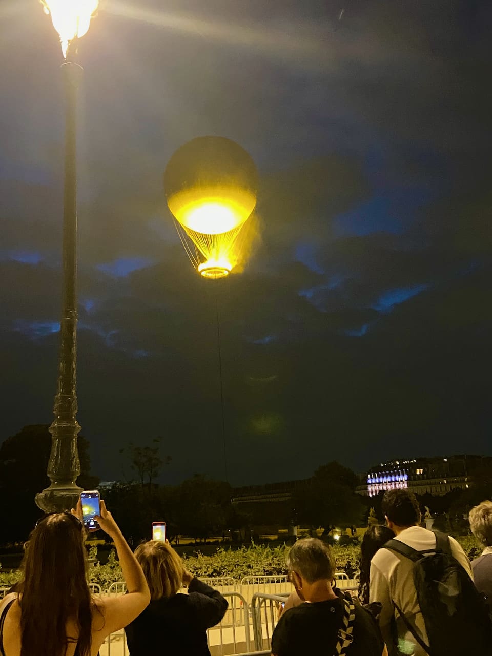 —And speaking of balloons, the olympic flame, which burned around the base of a hot air balloon in the Tuileries, was a beloved feature of the Olympics. So much so that it’s become a permanent fixture. Every night when darkness falls, it rises up into the sky, flames lapping at it’s base. Big crowds gather to watch it—many dancing to the music of buskers while they wait. They lower it around 2 am.