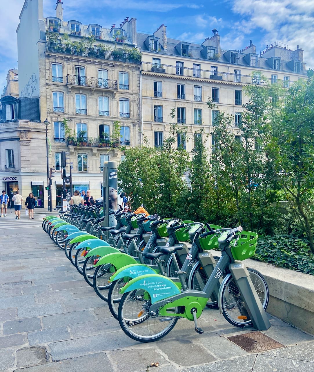 —Bikes are EVERYWHERE, thanks to new, dedicated bike lanes. In fact it’s suddenly a bit like Amsterdam, where you have to learn to treat bike lanes with the same respect you treat a busy city street: look both way before you step out, or you’ll get creamed. The mayor wants Paris to be a “15 minute city”, where everything you need can be found within that time frame on foot or by bike, and she’s succeeding.